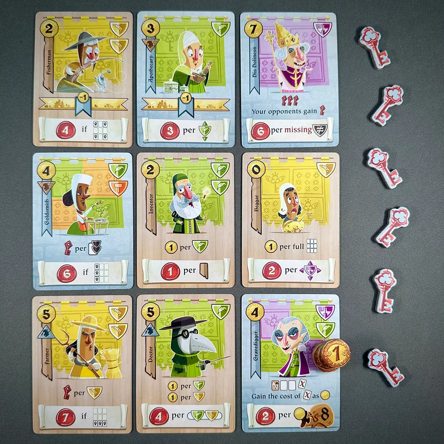 Übersicht Spielerinnenauslage Castle Combo. © Boardgamegeek.com